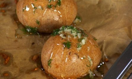 16. Достаём пахлаву из духовки и проливаем растопленным сливочным маслом.