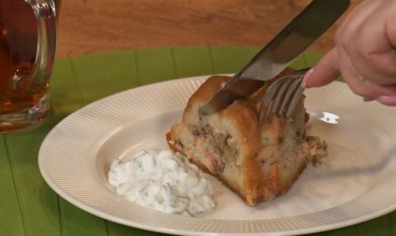 5. Накройте пирог крышкой. Готовьте его на небольшом нагреве до тех пор, пока дно теста не схватится и не получит золотистый цвет.